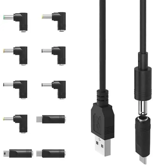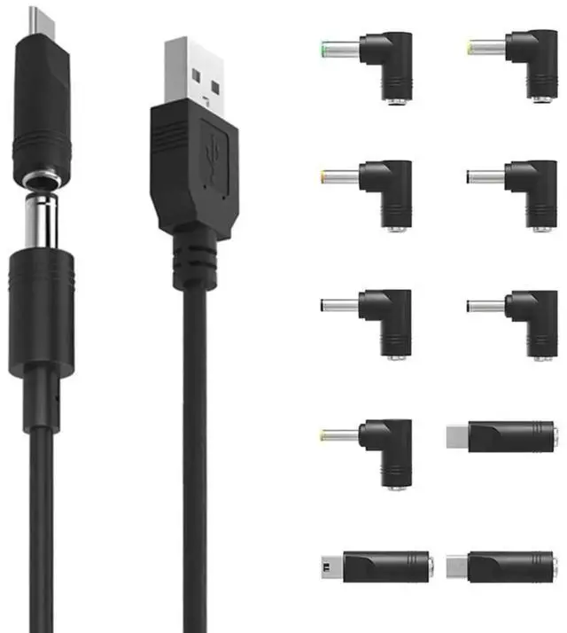 Universal USB to 5V DC Power Cord Charging Cable 5.5 x 2.1 mm Jack With 10 Interchangeable Plug Adapter mini Micro USB Type-C