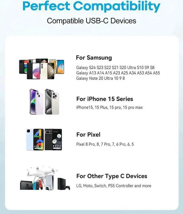 1. This is a USB-A to USB-C cable not a USB-C to USB-C cable and it only work with USB-A chargers.