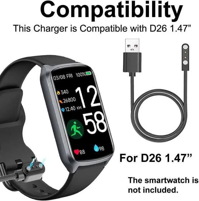 Smart watch Charger Cables Compatible with Amzhero Runfit D26 1.47 Smartwatch 2 PCs2 charging PinsThere is Build-in Short-circuit protection IC in this charger to avoid overvoltage and overcurrent. If the charger meets short-circuit situation the protection IC will cut off the circuit automatically. If you forget to unplug the charger after charging the Protection IC will keep the safety2 same