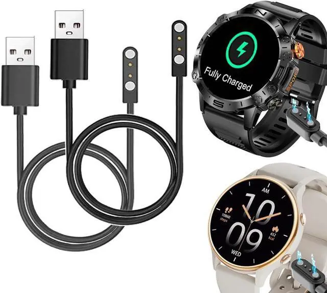 Smart watch Charger Cables Compatible with K53 KEEPONFIT 1.27 and PODOEIL JIWMYIN ESFOE K59 1.43 Smart Watch 2 Pieces2 charging PinsThere is Build-in Short-circuit protection IC in this charger to avoid overvoltage and overcurrent. If the charger meets short-circuit situation the protection IC will cut off the circuit automatically. If you forget to unplug the charger after charging the Protection IC will keep the safety2 same