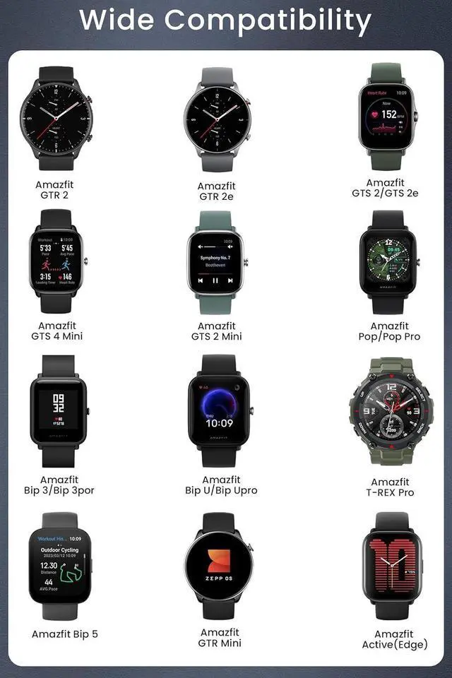 Tested Compatible Model: Yaekea Amazfit charger compatible with Amazfit GTR 2 GTR 2e GTR 2e SIM A2014 GTR Mini GTS 2 GTS 2e GTS 2mini GTS4 Mini Active Active EDGE Bip5 Bip3 Bip3 Pro Bip U Bip U Pro T-REX Pro T-REX pro A2011 Pop Pop pro Zepp E Zepp Z Smartwatch. (Not for Amazfit GTR 4/3/3 Pro/GTS 4/3/T-Rex2) Please pay attention to the spacing between the charging pins.