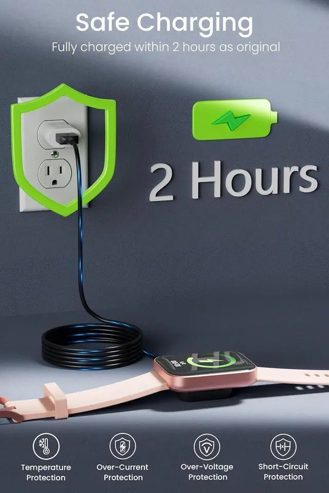 Stable Charging: When the charging power is 5V it takes about 2 hours for the watch to charge from 0 to 100.