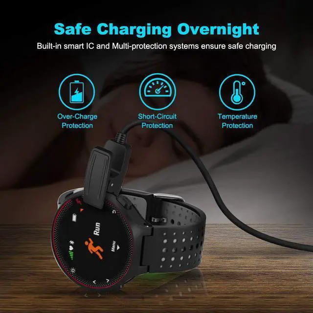 Wide CompatibilityCompatible with Garmin Forerunner 35 35J 230 235 630 645 Music 735XT Approach G10 S20 Vivomove HR ForeAthlete 35J SmartwatchDurable & Premium QualityMade of high quality wire ensure the excellent charging experience for your Device. Durable High-quality ABS + PVC Material and Copper Wire ensures Stable Current Transmission which assures the quality of the chargeFast Charge Stable PerformanceYou can connect with the power adapter car adapter power bank laptop and so on those charging method can provide high efficiency and high stability charging experience for youSafe ChargingThis Charging Cable has Voltage Regulator and PTC Inside to protect your Device being damaged by overcurrent when connected to power source.