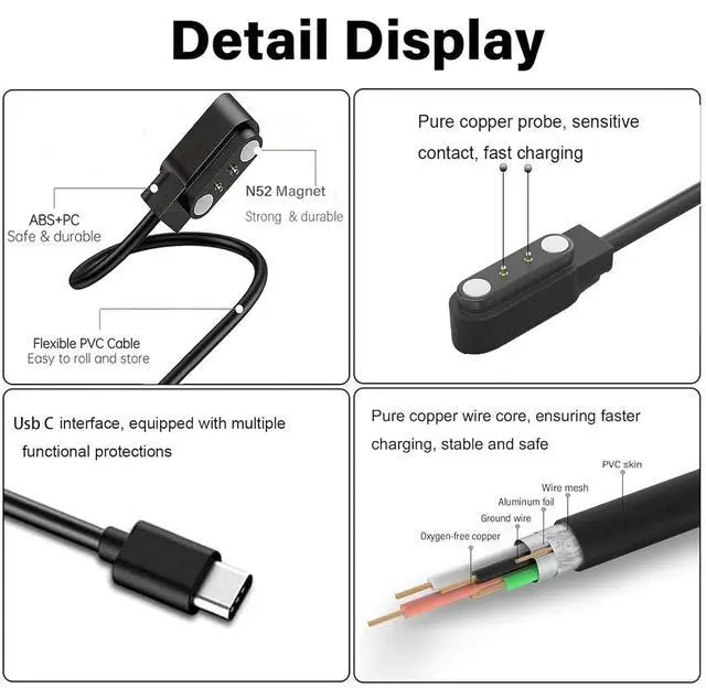 Magnetic Stability: The charging cable exhibits strong magnetic stability ensuring a secure and reliable connection between the cable and the watch during the charging process. Even with slight movements or vibrations the magnetic attachment remains intact preventing accidental disconnections and ensuring continuous power supply.