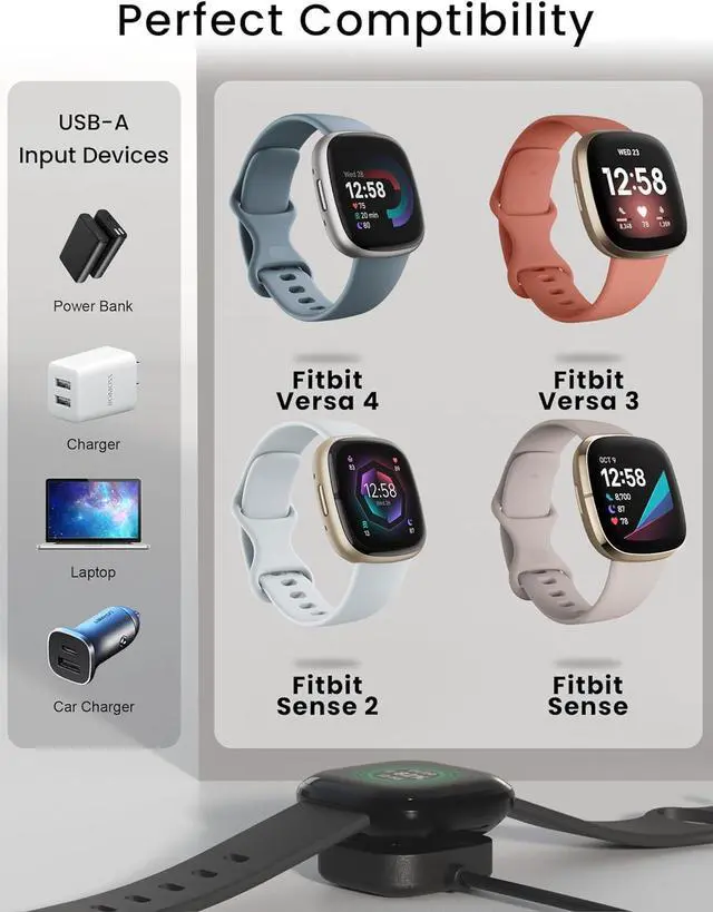 COMPATIBILITY: Ideal for charging your Fitbit Sense/Sense 2/Versa 3/Versa 4 smartwatch.