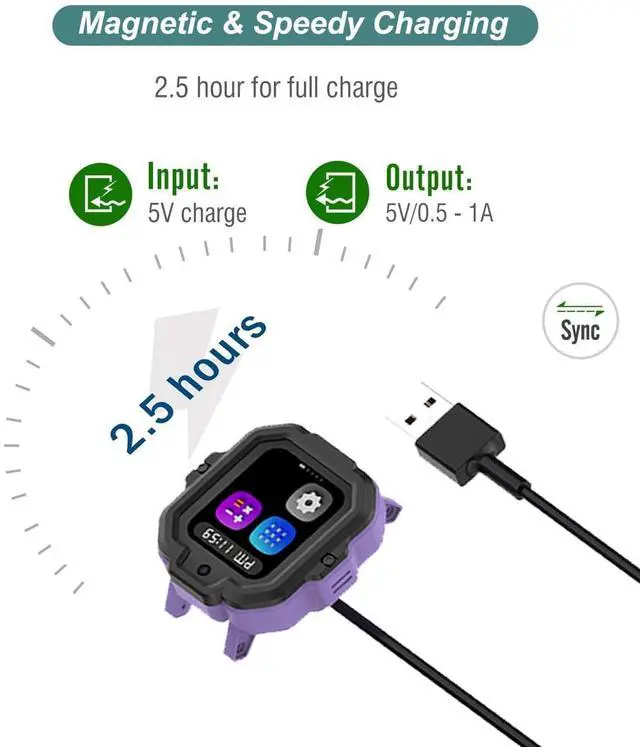 Replacement Charging Cable Suitable for TickTalk 5 Kids Smart Watch. Gives you a faster charging speed: )Adopted eco-friendly TPE and TPU material the flexible cable ensures tangle-free operation. DC ripple is small high efficiency fast charging the working temperature is low long service life. Worry and save trouble! Charging through power adapter car charger power bank laptop PC etc. Pack of 2 USB smartwatch charging cable can put one in your home and the other in your car office or bag