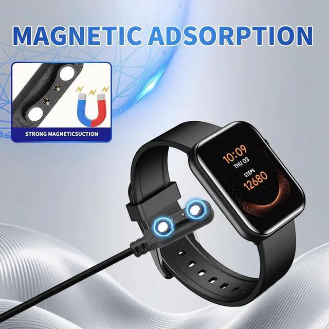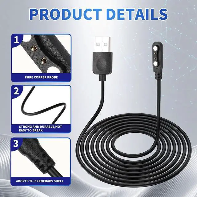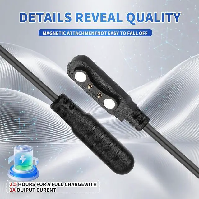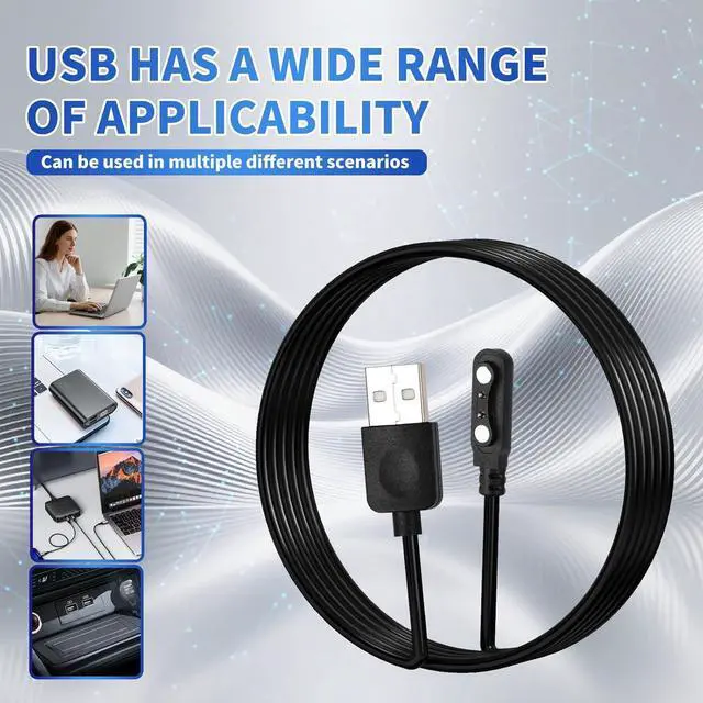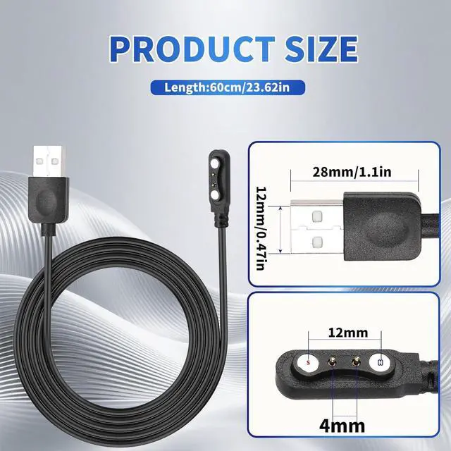 • Charging Station for Smart Watch Universal Magnetic SmartWatch Accessories Charger Cable 2 Pin Cord Charger Contact pin spacing 4 mm for Smart Watch Fitness Tracker (Black)