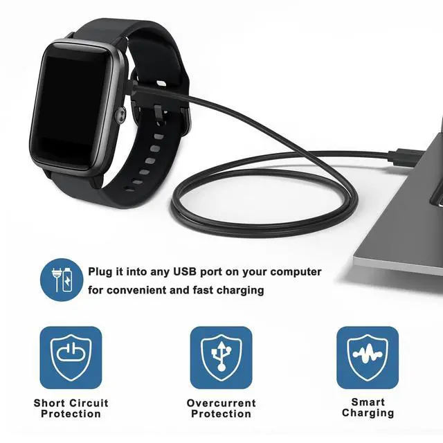 Charging: Smart watch charger Charging Cord includes built-in over-current over-voltage shot-circuit and over-temperature protection. Premium Quality Copper Wire and Pin Gold-Plated ensure charging safety and reliability