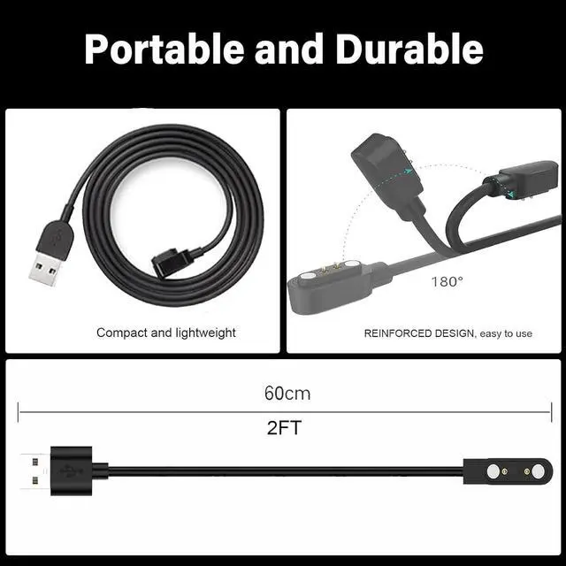 Efficient Fast ChargingAdvanced fast charging technology optimized circuit design ensures stable output of current and voltage. Strong Magnetic Design Built-in pure copper probe with solid magnetic power supply stronger adsorption watch charging than other chargers. Short-Circuit ProtectionMultiple protection mechanisms such as short-circuit protection over-voltage and over-current protection effectively prevent the battery from overheating and damage. Stable and DurableMade of ABS material and flexible PVC. The charger cable has been tested for bending over 5000+ times. Portable and ECO-FRIENDLYThe charging cable is designed to be lightweight and portable so it can be put into your travel bag and carried around.