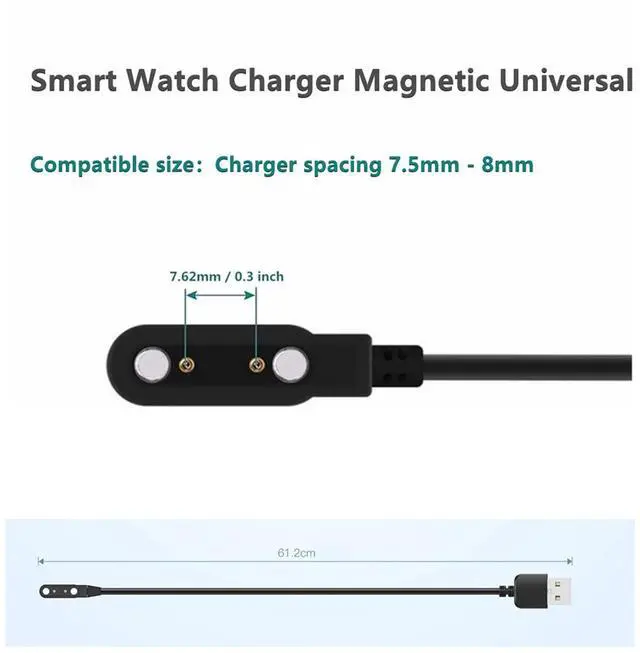 • Smart Watch Universal Charger Magnetic da fit Smartwatch Accessories 2 Pin 7.62mm Pin-Pitch Magnetic Replacement Charger Cable Compatible for All 2-Pin 7.5mm - 8mm-Pin-Pitch Smart watch & Wearables
