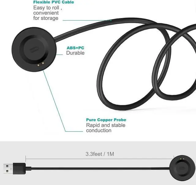 ? Perfect Fit. 3.3FT Replacement Charging Power Cable Cord Compatible with iTECH Fusion 2 iTECH Fusion 3 Smartwatch.? Power Protection Inside (PTC). Easily plug it into USB port on your PC laptop notebook wall charger or car charger to charge.? Premium Quality. Adopted eco-friendly TPE and TPU material the flexible cable ensures tangle-free operation. Flexible tangle free cable and exquisite metal connector is durable making it sufficiently robust for even the most demanding users? Lightweight and Portable. Compact and lightweight design makes it easy to store and carry. DC ripple is small high efficiency fast charging the working temperature is low long service life.