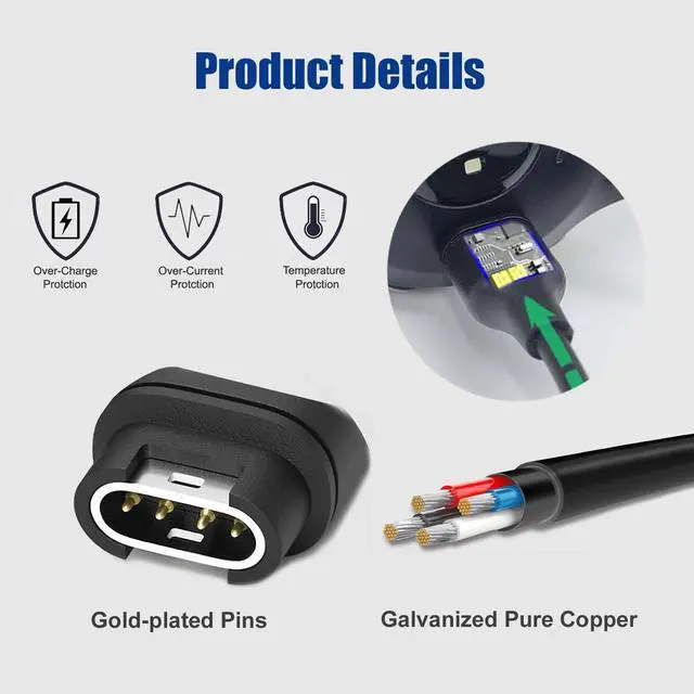 The upgraded copper core supports fast and safe charging reaching a full charge in approximately 2.5 hours without battery damage. Durable & Travel-Ready DesignMade from reinforced TPE material this garmin charger cable resists bending fraying and daily wear. The strong connector ensures a secure fit every time making it a reliable garmin watch charger cable for home use travel bags gym kits or office setups. 2-Pack for Backup & ConvenienceThis set includes two charging cables letting you keep one at home and one on the go. Whether as a spare or replacement this garmin charger ensures youre never left without power.