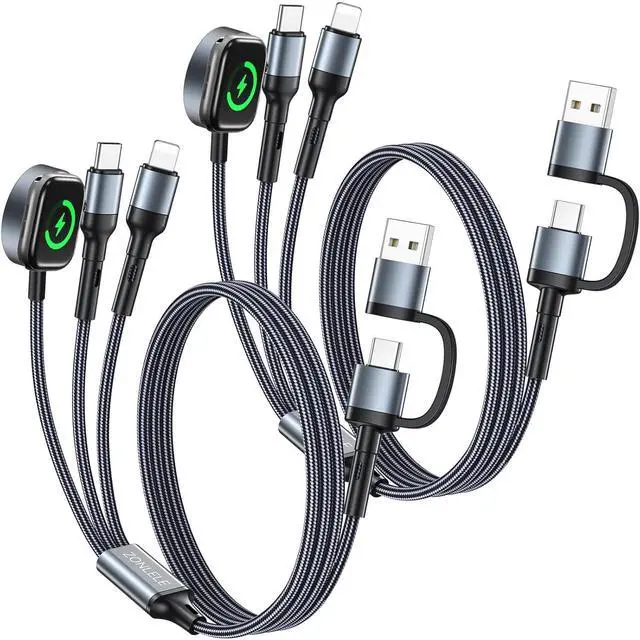 3 in 2 Multi Charging Cable DesignThere are 6 charging ways- USB C/A to iWatch charger & USB C/A to L cable & USB C/A to Type C Cable. The chargers for multiple devices support simultaneously charge 3 devices with a USB C/A adapter (not included) compatible with all iWatch series 11/10/9/8/7/6/5/4/3/2/1 Ultra and SE models. The L port is compatible with iPhone 14/13/12/Pro/Max/iPad USB C is for iPhone 17/iPhone 17 Pro/iPhone Air/ iPhone 17 Pro Max/16/15 Galaxy S25/S25+/S25 Ultra/S24/S23/S22 (Galaxy Watch and laptop charging is not supported). Vacation Travel Essentials & Car AccessoriesWith lightweight and portable design this 4 feet 3-in-2 multi charging cable is fit in your travel bag take it on the go or simply use at home and office.