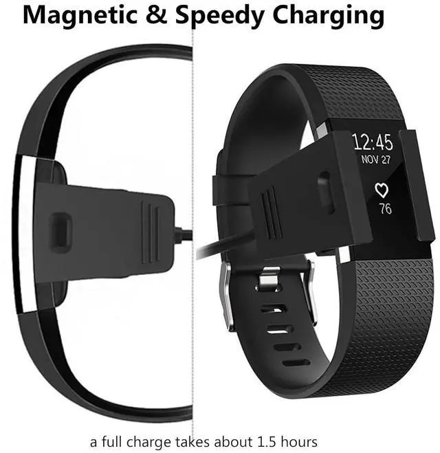 1. Wall charger + charging cord Compatible with Fitbit Charge 2 Smartwatch. Magnetic Charging Cable make charging your watch utterly effortless. You do not have to remove the case or bands when charging with this charger2. [Raw Charging speed] The charger kit provides raw charging speed for about 1 hour on a full charge.