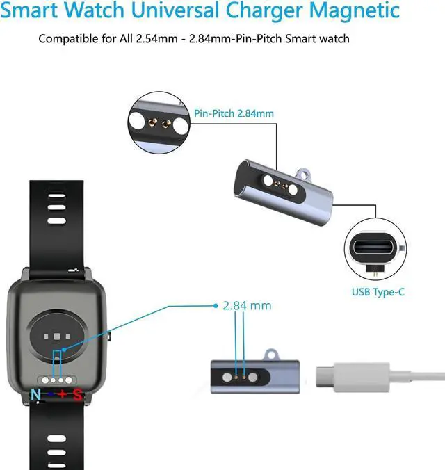 Wide Compatibility The universal magnetic charger is designed for Smartwatches that support magnetic charging. it is compatible with devices having contact points between 2.54 mm and 2.84 mm apart. We highly recommend measuring the distance between your device's charging contacts before purchasing to ensure a perfect fit. Compatible brands include but are not limited to: YAMAY Willful Letsfit Fitpolo VeryFit Umidigi LETSCOM Blackview TOZO and more.