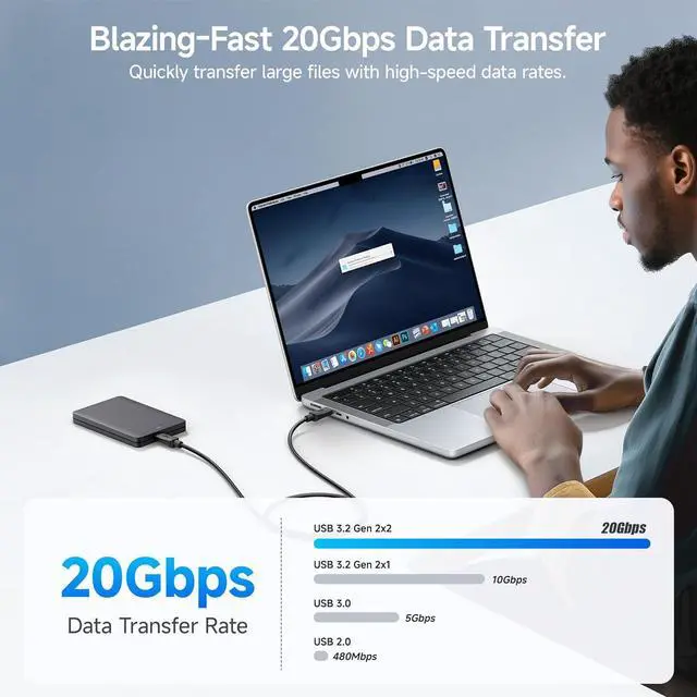 20G data & 4K video with this high performance USB-C to USB-C cable; USB 3.2 USBC to USBC cables offers fast transfer speed when connecting a portable external hard drive enclosure with USB C; USB C video cable/USB-C video cable provides full 4K @ 60Hz video resolution support; Power delivery and video from your computer for a USBC monitor such as the MB169C Type-C portable Monitor ZenScreen MB16AC or AOC i1601fwux USB-C powered portable monitor or LG 4K monitor with this USB-C monitor cableLong USB 3.2 cable type c is almost 2x the length of other USB C full featured cables with 4K video 20 Gbps data transfer and 240W power delivery; Fully backwards compatible with earlier USB-C versions; Superior construction combines molded strain relief a flexible PVC cable jacket and bare copper conductors240W USB C display cable provides power delivery for charging your laptop tablet or phone up with up to 240 watts; Use a single USB C power delivery cable to charging your computer or phone; USB Type C fast charge cable supports popular devices such as the iPad Pro Google Pixel 2/ 3XL OnePlus 2 / 3 HTC 10 P9 LG G5 Nexus 6P Galaxy S9 / S9+ / S8 / S8+ / Note 9 / Note 8 with your USB Type C charger USB C power adapter or USB C car chargerUSB C video cable 4K is compatible with docks and USB C monitor including the U2520D P2720DC U2721DE U2719DC S2719DC U2419HC U2421HE P2419HC and HP E273d E24d G4 E223d E27d G4Thunderbolt 4 & USB C cable compatible with computers such as the MacBook Pro XPS 13 / 15 Alienware 13 / 15 / 17 and the Precision 15 / 17 Aspire R13 / V15 S5-391-6419 Nitro / V17 Nitro Predator 15 / 17 ROG G752VL / GT752VT / GT752VY / GX700VO / ZenBook Pro UX501VW Clevo P750DM / P770DM / P870DM ThinkPad P50 / P70 MSI GS40 / GS60 / GT72 / GT80 / Vortex/ WS60 / WS72 VAIO S11