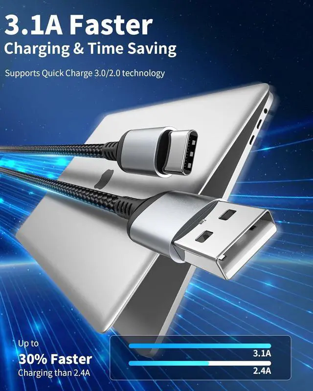 USB-C Fast Charging: This USB A to USB C Cable 2FT? delivers up to 3.1A of current for efficient fast charging while supporting 480Mbps high-speed data transfer. Ideal for keeping your devices powered throughout the day without long waits.