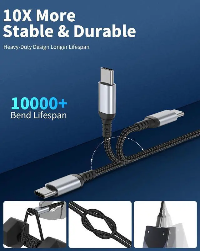 Highly-Durable & Tangle-Free: Built to last far longer than standard cables. The premium braiding on this 2 FT USB C Cable? resists tangles and has been rigorously tested to withstand 10 000+ bends. This Short USB to USB C cable? is your reliable solution for demanding daily use at home in the car or at the office.