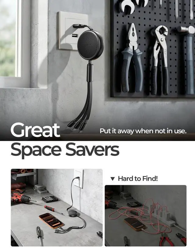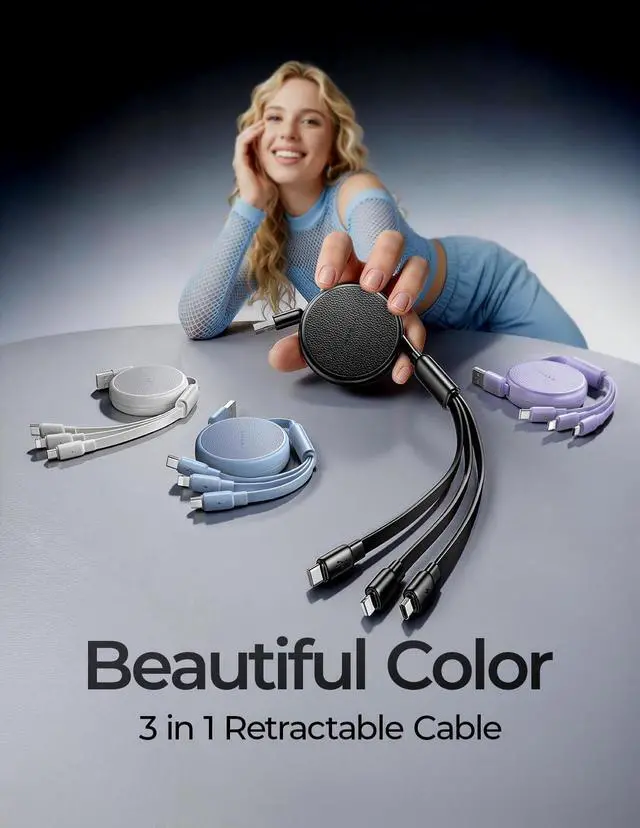 Note: Tug One End Both Stretch Out. Travel Essentials and Camping EssentialsThe 3-in-1 Retractable Charging Cable retractable usb c cable perfectly resolves the clutter caused by excess cables on your desk and in your car keeping your life consistently neat and organized. When you're getting ready to travel there's no need to carry a bunch of different cables for various devices anymore. With just one USB-A charging head you can charge three devices simultaneously greatly enhancing efficiency. It's a must-have companion for your travels. High-Quality Material LISEN Multi Charging Cable uses highly elastic flat TPE material for extreme durability and flexibility which endures more than 10 000 tensile tests. The high-quality aluminum housing makes the cable more durable and resistant to heat and corrosion. 24/7 Service Please get in touch with us if you have any queries or issues. Our dependable customer care will guarantee online 24/7 and respond to you with a suitable solution. Hope you have a safe and happy journey with the car accessories for men and women!