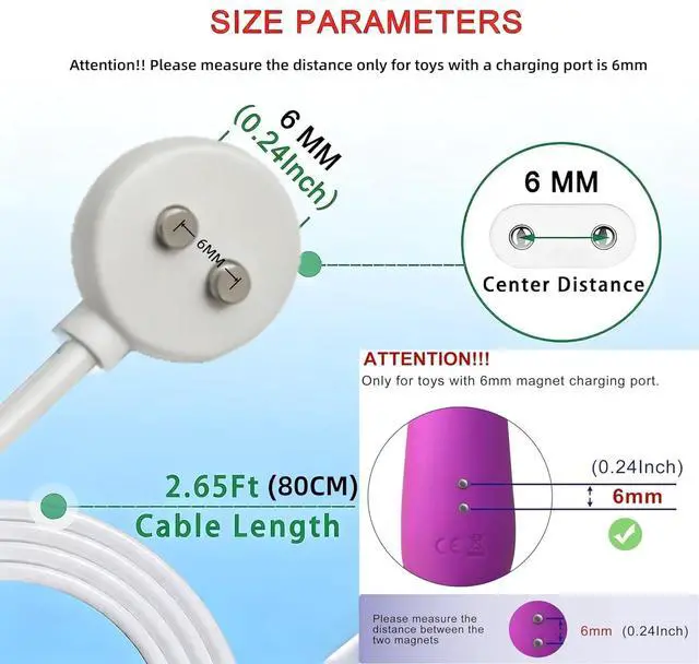Magnetic Charging Cable: 2Pack(USB-C USB-A)/ 2.65FT (80cm) Toy Charger Cable Strictly adhering to the 6MM Round magnetic connector specification ensures a zero-tolerance fit with Toy charging ports. Completely eliminate sizing issues! Experience superior charging performance for your rose-toy.