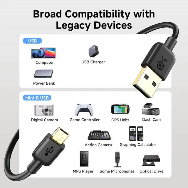 Essential USB Mini B Cable: The Cable Matters Mini USB to USB cable connects legacy Mini USB 2.0 devices to computers USB wall chargers or power banks for data transfer and charging. This versatile USB to Mini B cable is ideal for syncing photos powering GPS units or connecting cameras and controllers.