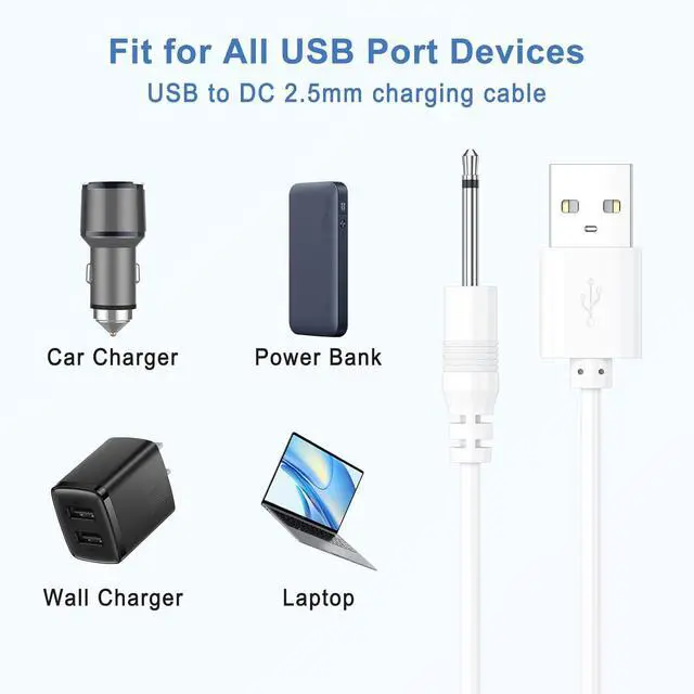 Compatibility: USB 5V DC Charging Cable for Massager Toys and Other Devices Which Use Charging Port is 2.5 mm Round DC Charging Cable.