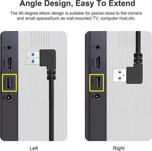 SAVE SPACE: This usb 90 degree cable save the space and keep your table clean This 90 degree usb extension cable can avoid breaking the USB ports by accident at the same time.