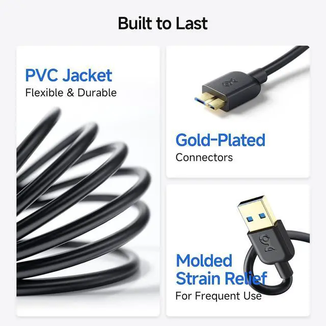 External Devices: This USB to Micro USB 3.0 cable connects external hard drives USB hubs smartphones and tablets with a thin USB 3.0 Micro USB port. The Micro USB 3.0 cord is the perfect companion for your external hard drive ensuring reliable performance across your devices. SuperSpeed USB 3.0