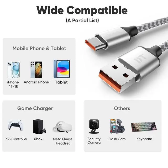 SCENARIO APPLICATIONE: This usba to usbc has been certified for safety reducing the risk of overheating during charging. You can rest assured to prepare a c port charger in the car and one in the bedroomDT