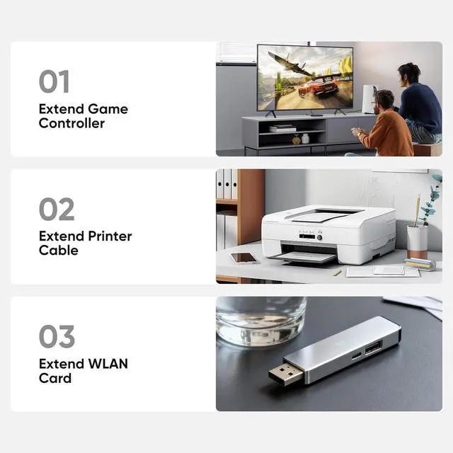Data Transfer: USB 3.0 extender adapter supports up to 5Gbps High-Speed transmission ensuring fast and stable connections for gaming external hard drives printers and moreCompact 8-Inch