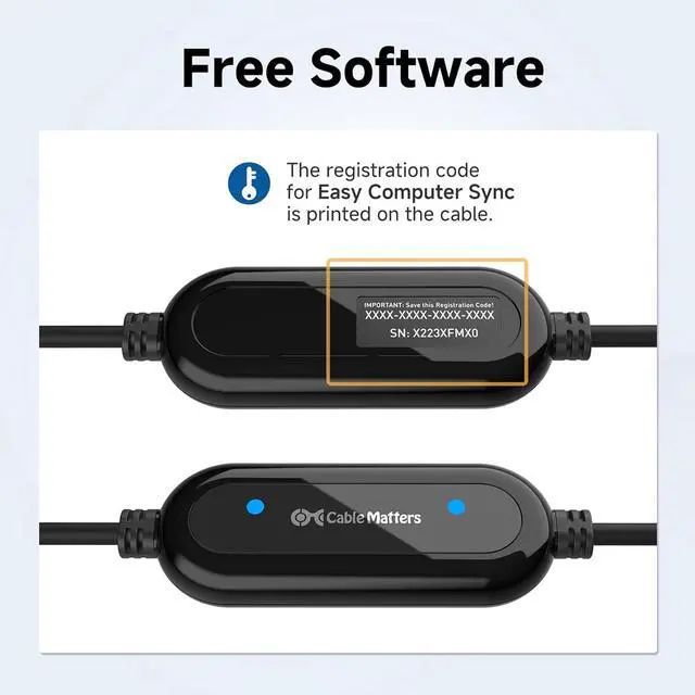 USB bridge cable supports data migration at USB 3.0 speed of 5Gbps and provides a faster transfer method than USB 2.0 or cloud storage. Move s of multimedia data in minutes instead of hours without uploading and downloading. The computer transfer cable also offers higher security than moving files over a cloud-based network; Perfect tool for transferring large program application files for upgrading from Windows 7 to 10. Free software downloadable on manufacturer website: PClinq 5 supports Windows and macOS with no registration code needed. Easy Computer Sync supports Windows only. The registration code is printed on the cableSoftware Required for