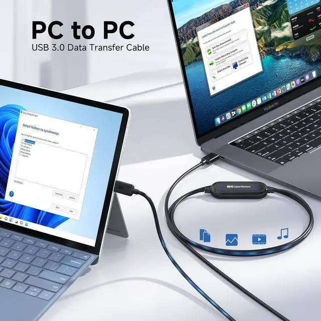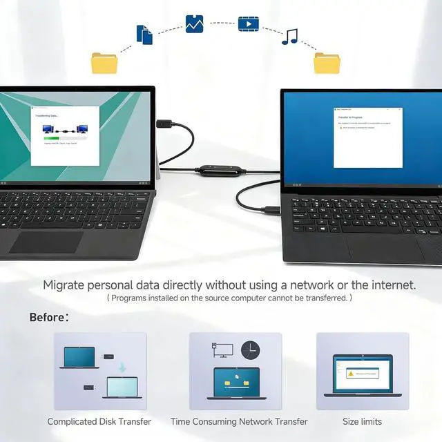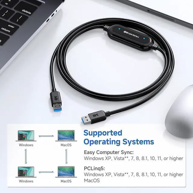 Proper Function: This USB 3.0 PC-to-PC transfer cable requires the included Easy Computer Sync (Windows) or PClinq5 (Windows/macOS) software to function. Install the software on both computers before connecting the cable. For best results plug the cable directly into your PCs USB ports (avoid hubs or docking stations) and run the software with administrator privileges if needed. This ensures smooth file transfer remote PC control and full compatibility with Windows 11/10/8/7/Vista/XP and macOS.