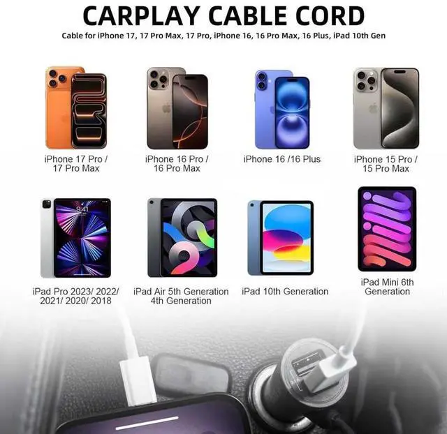 Perfect Compatibility: This car carplay cable connects your Phone 17 Phone 16e Phone 15 Phone 16 All series Phone 16 All series and for 10th Gen Tab Pro 12.9 -inch (3rd 4th 5th Generations) Tab Pro 11-inch (1st 2nd 3rd Generations) New Tab Mini 6th Generation iPad Air 4th Generation. 3. Constructed with high-quality materials this 3.3FT cable is lightweight and easily portable for charging your devices on the go. It fits easily in your backpack purse or laptop bag providing convenience wherever you are. 4. Versatile UseWhether at home in the office or on the go this USB A to C cable is versatile and convenient for all your charging needs. 5. USB cables if there is any problem please contact us.