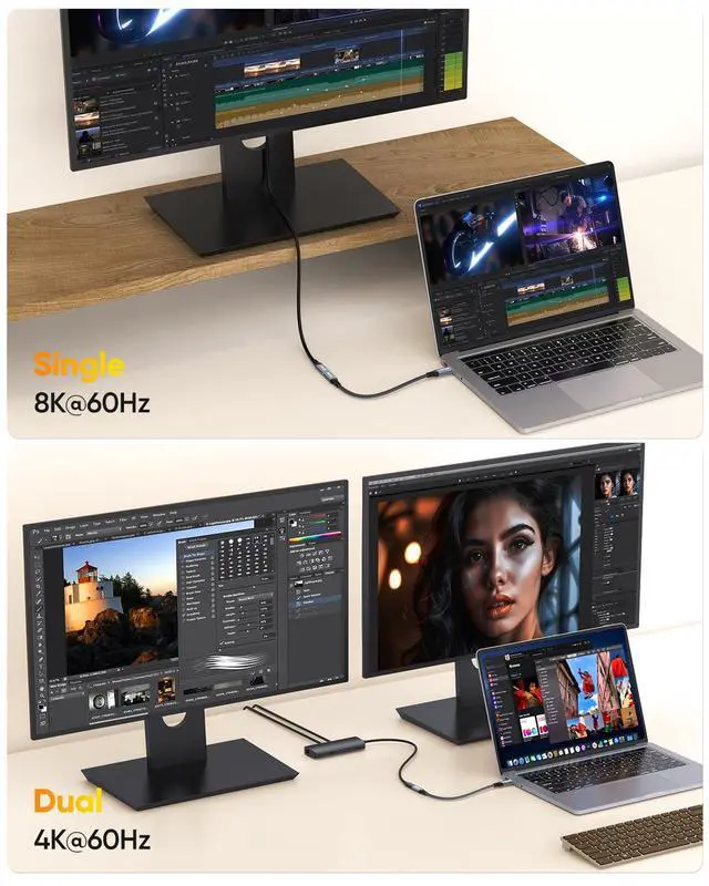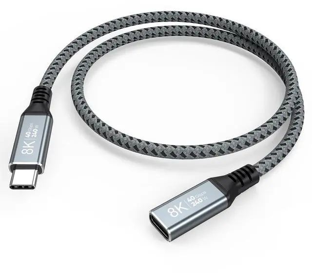 Video and More: Short USB C Extension Cable supports crystal-clear Ultra HD resolution delivering up to 8K@60Hz 4K@240Hz(support 4K@120Hz/60Hz) on a single display and up to 4K@60Hz on dual displays. Effortlessly connect your USB-C laptop to a USB-C monitor for sharper more lifelike visuals during movies gaming or entertainment240W