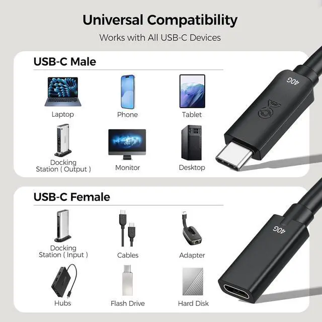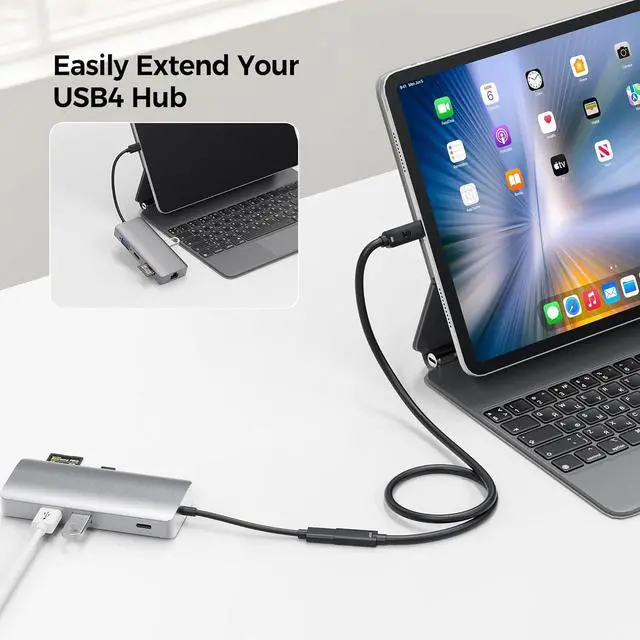 Compatible: Extend your cable connection without sacrificing speed; This USB4 extension cable is fully compatible with USB4 40Gbps transmission modes for the ultimate in USB-C extension speedFlawless USB-C