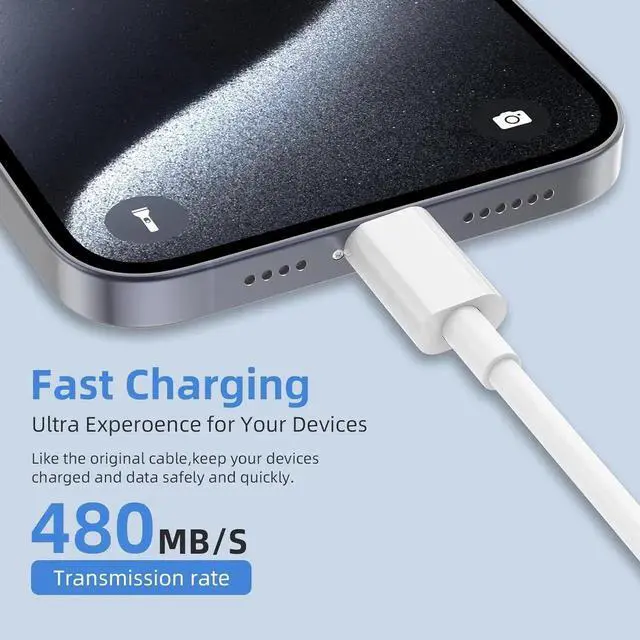 Speed The USB-C cable will provide optimal voltage and stable current for your iPhone/iPad, also a fast trasfering iPhone data cable up to 480Mbps(30MB/S).