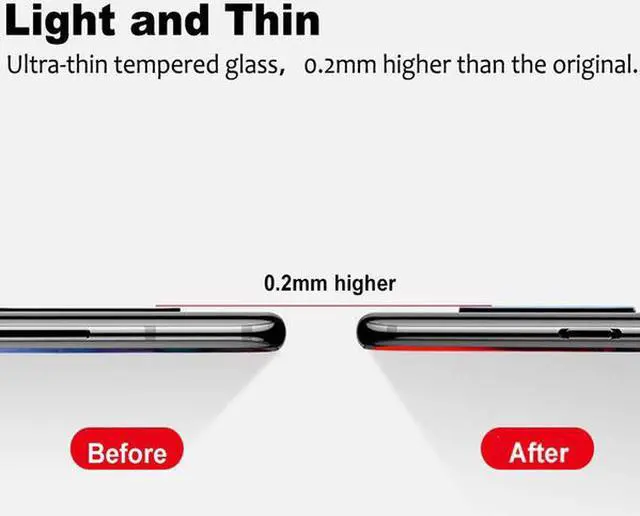 Easily installation and bubble free, the camera lens protector film can be automatically adsorbed on the camera lens. No fingerprint, no bubbles and leaves no residue when removed.