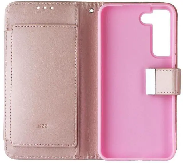 Mybat MyJacket Wallet Case for Samsung Galaxy S22 Smartphones. Rose Gold Leather version.
