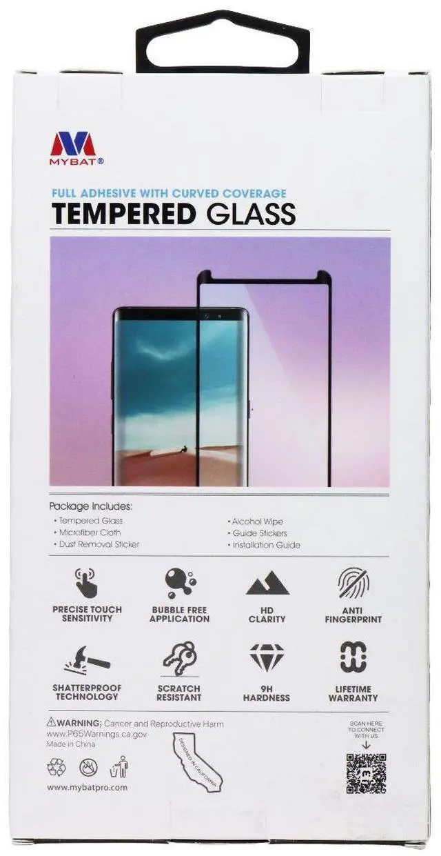 The Mybat Full Adhesive Tempered Glass for Samsung Galaxy S9 Plus Smartphones. Curved Coverage.