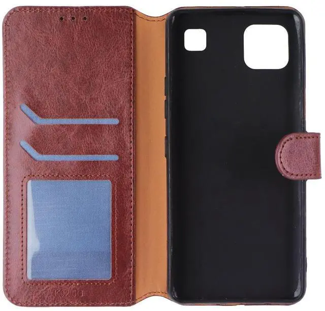 Features:Folio-style case with front flap for full screen protectionSmooth brown leather-like finish with a professional lookBuilt-in TPU inner shell keeps the phone secureIncludes card slots and a pocket for cash or IDsFront cover folds into a kickstand for hands-free viewingMagnetic closure keeps the case securely closedPrecise cutouts for easy access to ports, buttons, and cameraSlim and lightweight for easy carrying in pockets or bags