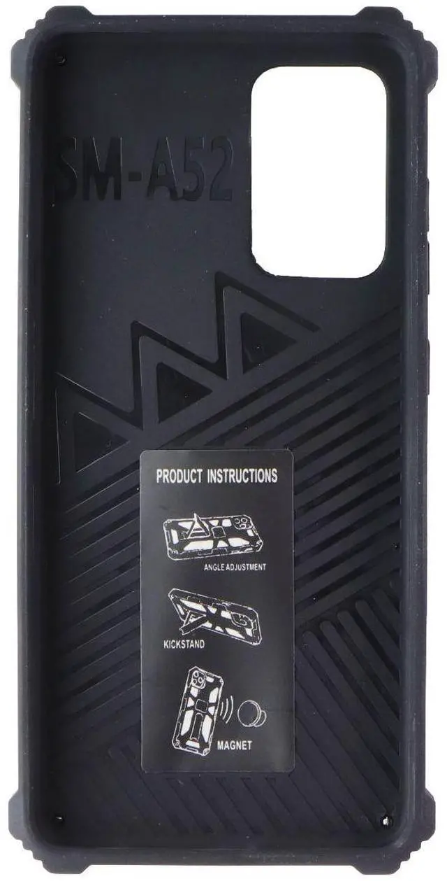Features:Designed specifically for Samsung Galaxy A525GRugged dual-layer protection with impact-resistant TPU core and hard outer shellBuilt-in kickstand for hands-free viewing in landscape orientationRaised bezel edges safeguard the screen and camera from flat-surface contactReinforced corners absorb shocks and reduce damage from dropsPrecision cutouts ensure full access to buttons, ports, speakers, and cameraSlim profile remains pocket-friendly despite rugged buildQuick snap-on installation or removal