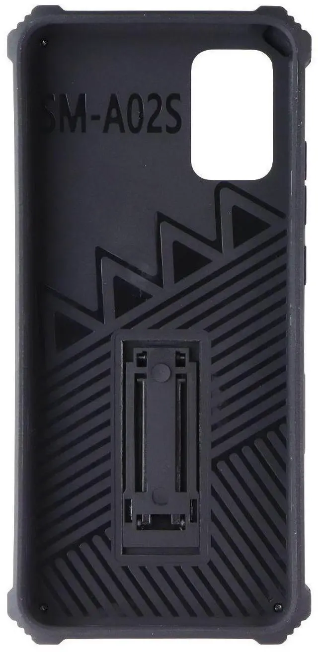 The MyBat Sturdy Hybrid Protector Cover (with Stand) for Samsung Galaxy A02s. Black version.