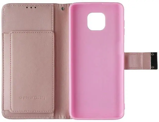 The Mybat Leather Folio Case for Motorola Moto G Power (2021) Smartphones. Pink Version.
