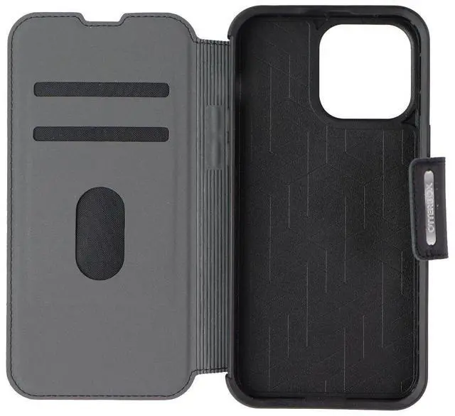 The OtterBox Strada Series Case for Apple iPhone 14 Pro Max Smartphones. Black version.