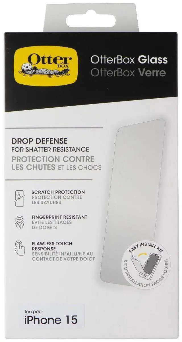 Features:Perfect Fit for iPhone 15: Precision-engineered exclusively for the iPhone 15, this OtterBox screen protector offers a flawless fit. It not only preserves your phone's sleek design but also ensures unparalleled protection against everyday hazards.Advanced iPhone 15 glass screen protector with anti-scratch technology and drop protection for shatter resistanceMaintains flawless touch response and resists fingerprintsEasy Installation: Everything you need for an easy at-home installation is included, and its precision fit to work seamlessly with your phone case.
