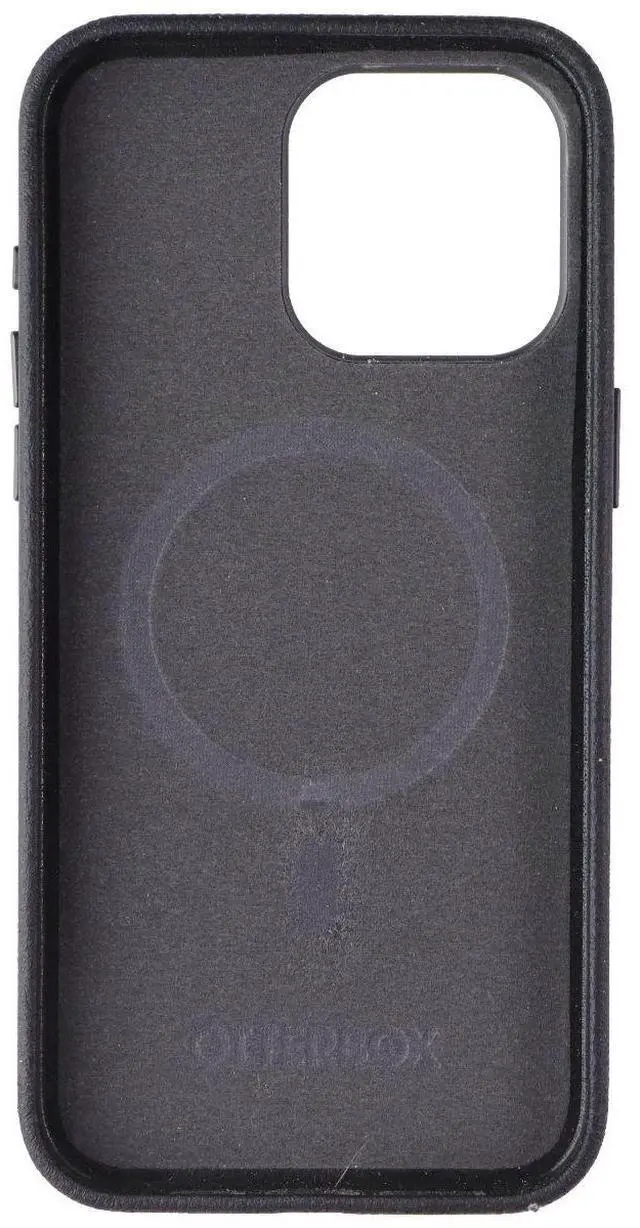 The OtterBox Symmetry Cactus Leather Case for MagSafe for iPhone 16 Pro Max. Noir Ash Black version.