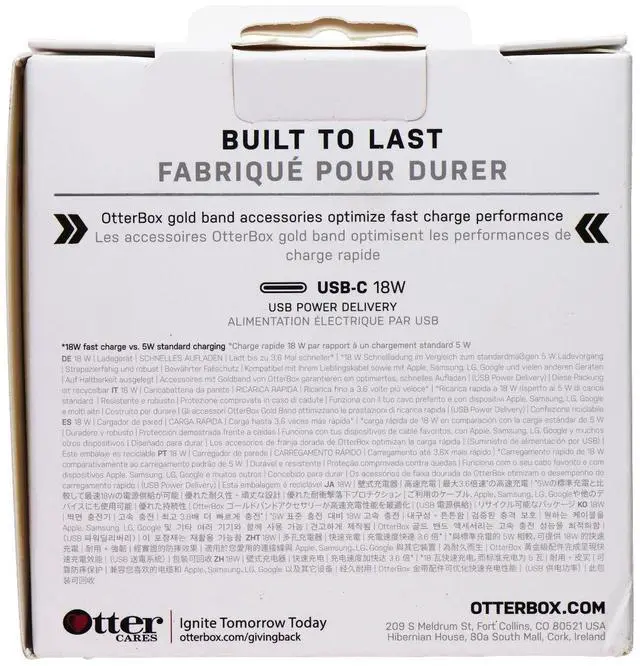 The OtterBox 18W USB-C Wall Charger. White Version. (EUROPEAN PLUG) Please Note: This wall charger has a European plug. Features:Fast ChargeProven Drop ProtectionClean White Design