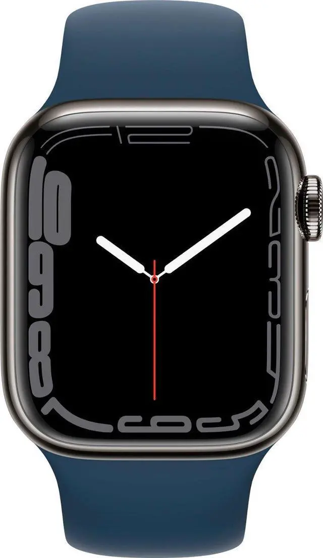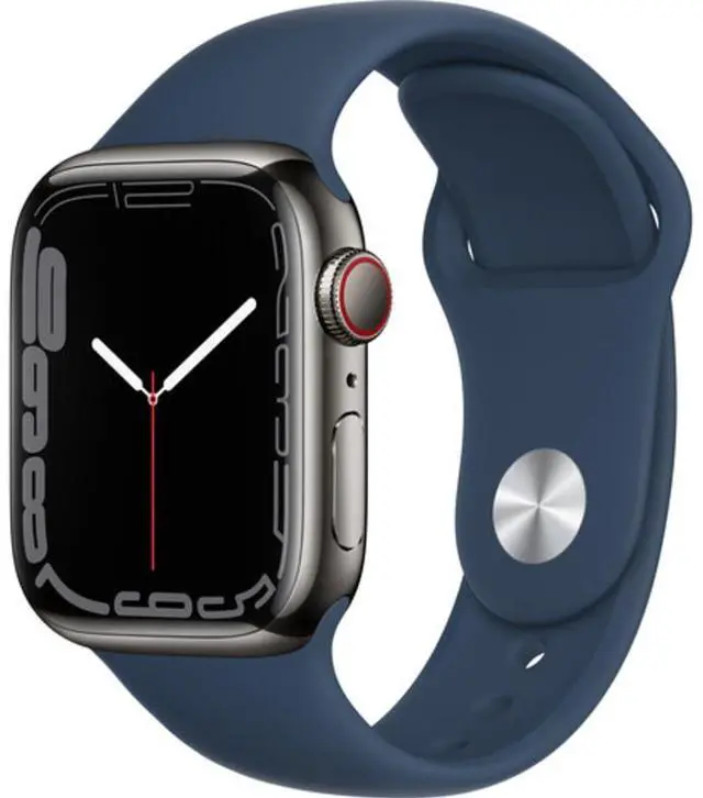 • Apple Watch Series 7 GPS + LTE, 41MM Graphite Stainless Steel Case Blue Band