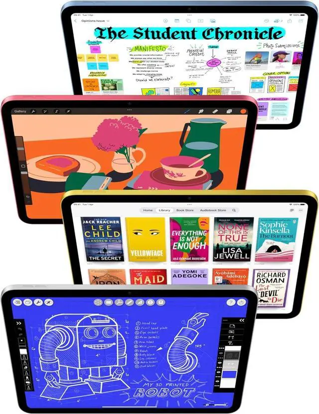 PRODUCT OVERVIEWThe 11-inch iPad is now more capable than ever with the superfast A16 chip, Liquid Retina display, advanced cameras, fast Wi-Fi 6, USB-C connector, and four gorgeous colors. iPad delivers a powerful way to create, stay connected, and get things doneall for a surprisingly affordable price.   KEY FEATURESWHY IPAD The 11-inch iPad is now more capable than ever with the superfast A16 chip, a stunning Liquid Retina display, * advanced cameras, fast Wi-Fi and 5G, * USB-C connector, and four gorgeous colors. iPad delivers a powerful way to create, stay connected, and get things done.