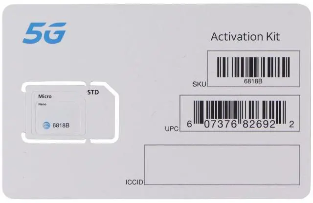 AT&T 5G SIM Card SKU 6818B - Triple Cut 3-in-1 - For Postpaid & Prepaid Devices.